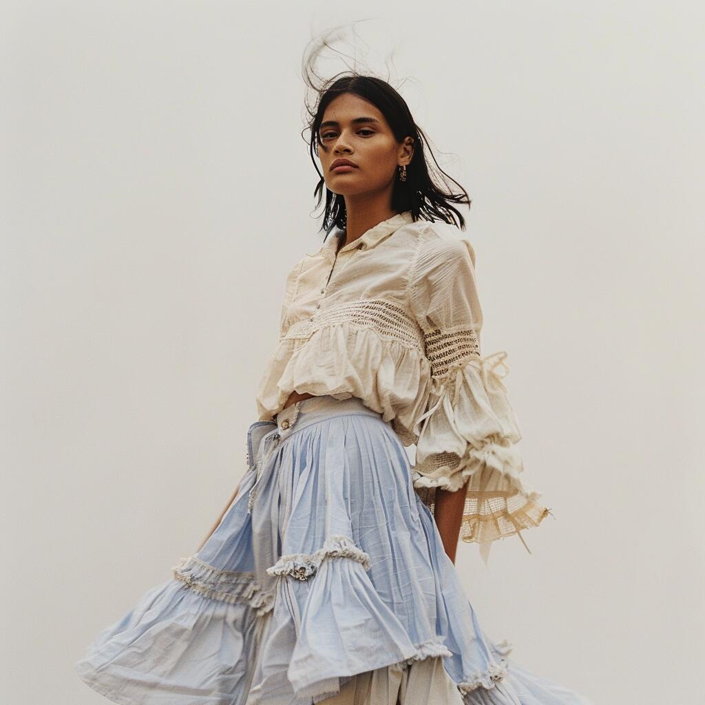 Breezes whisper tales of elegance, where fabric flows like dreams on a sunlit day.